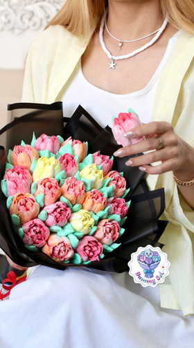 گیفت سه عددی گل خوراکی مارشمالو مدل گل لاله۱۵۰٬۰۰۰ تومان