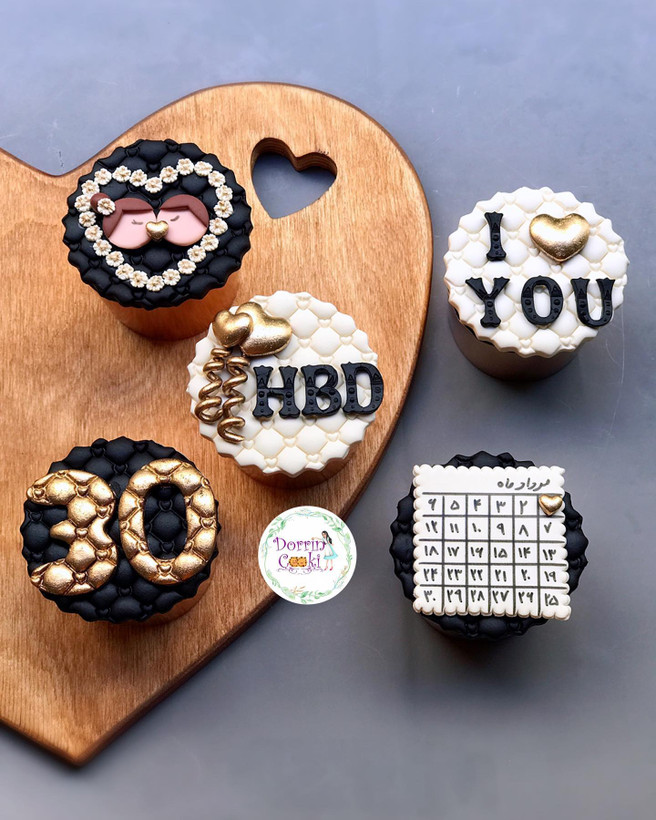 پک کاپ کیک تولد تم مشکی و طلایی شامل 5 عدد کاپ کیک شکلاتی و جعبه