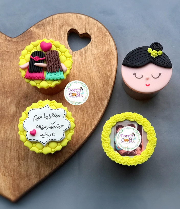 پک کاپ کیک تولد تم زرد شامل 4 عدد کاپ کیک شکلاتی همراه جعبه