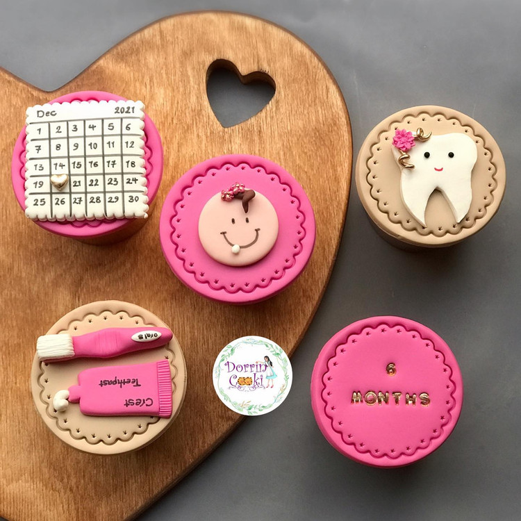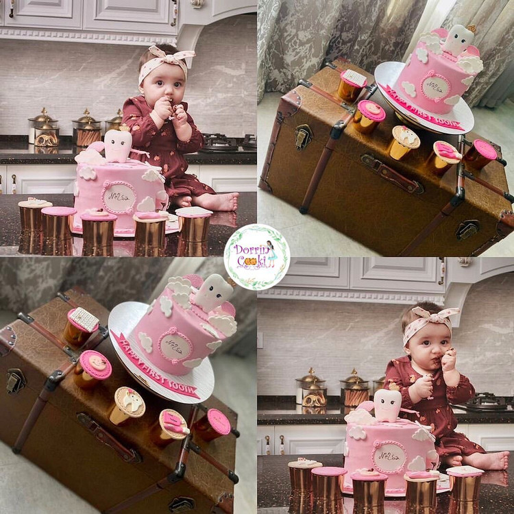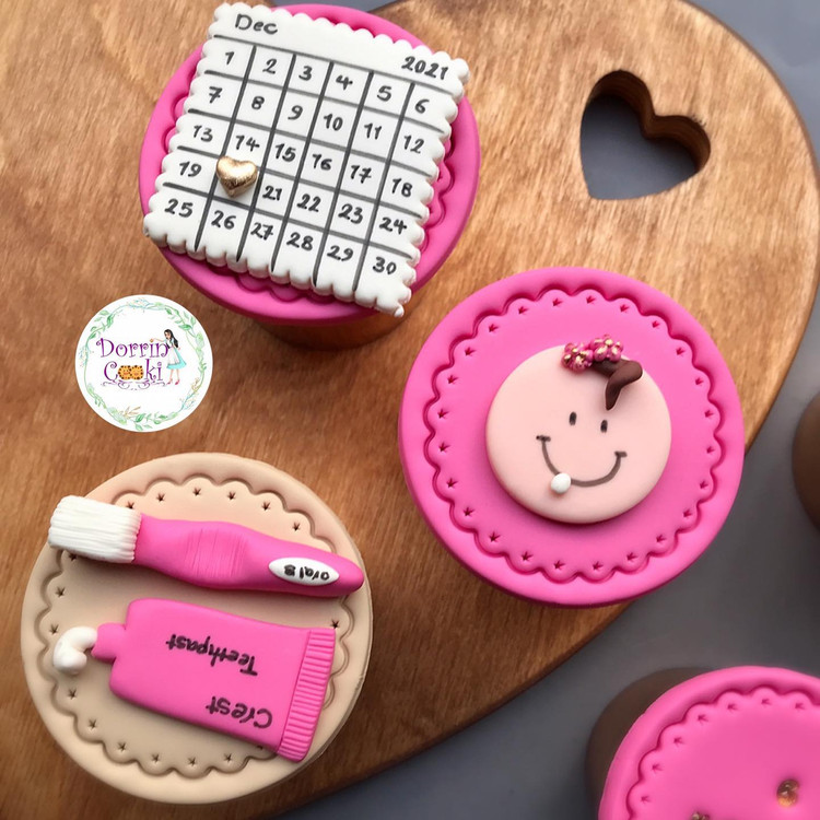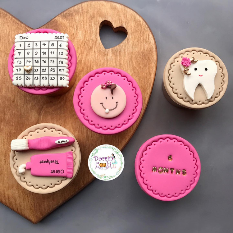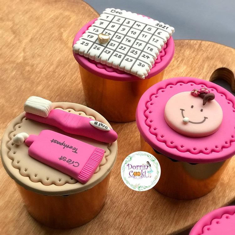 پک کاپ کیک دندونی تم صورتی و کرم شامل 5 عدد کاپ کیک شکلاتی تم دندونی همراه جعبه