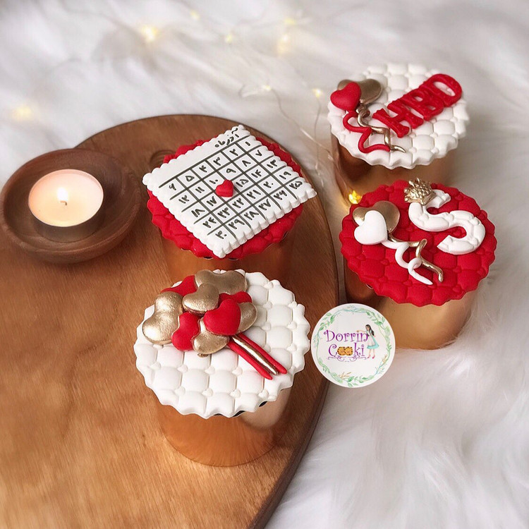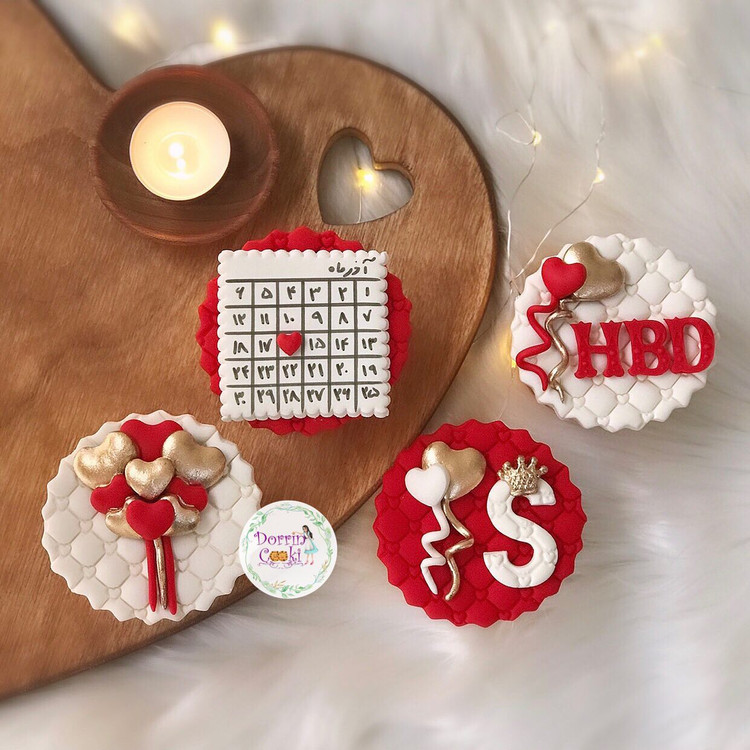 پک کاپ کیک تولد تم قرمز و طلایی شامل 4 عدد کاپ کیک شکلاتی همراه جعبه و ربان