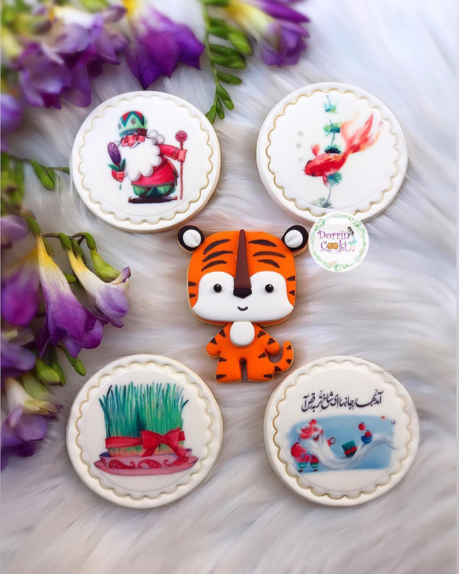 پک کوکی سال نو - سال ببر شامل 5 عدد کوکی همراه جعبه و ربان