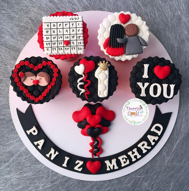 سینی کاپ کیک سالگرد ازدواج شامل 5 عدد کاپ کیک شکلاتی همراه سینی طرحدار