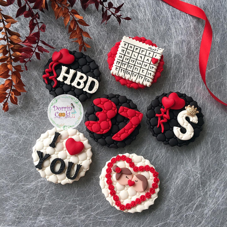 پک کوکی تولد تم مشکی و قرمز شامل 6 عدد کوکی همراه جعبه و ربان