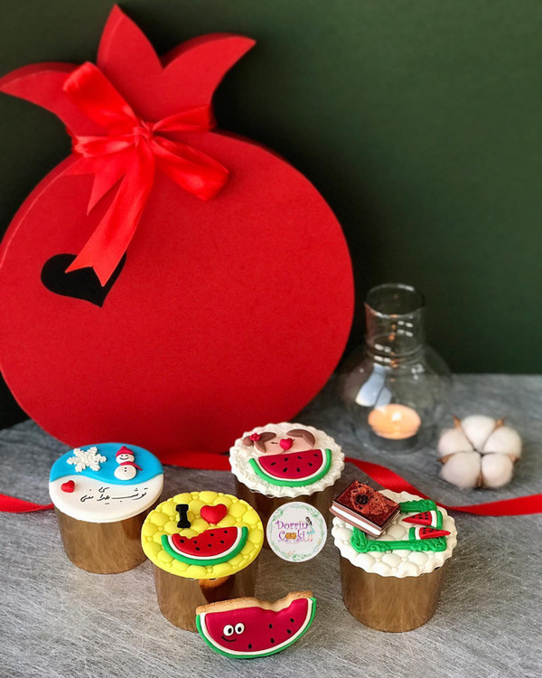 پک کاپ کیک یلدا شامل 4 عدد کاپ کیک یلدا همراه جعبه ساده و ربان توجه : برای کاپ کیک جعبه انار موجود نیست
