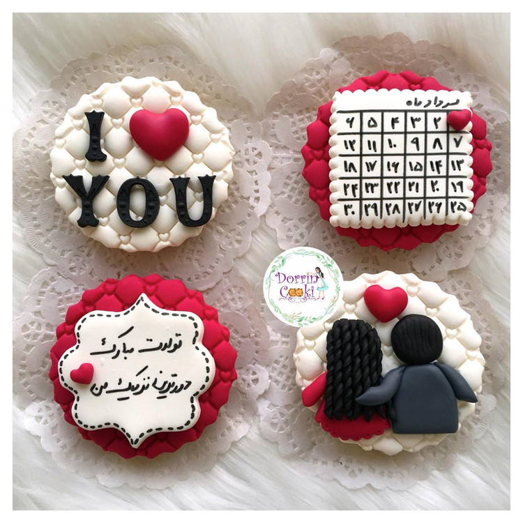 پک کوکی تولد تم سفید و قرمز شامل 4 عدد کوکی همراه جعبه و ربان