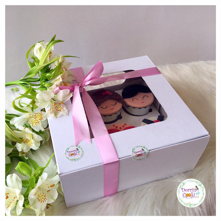 پک کاپ کیک سالگرد ازدواج تم طوسی و صورتی 3 شامل 5 عدد کاپ کیک همراه جعبه و ربان