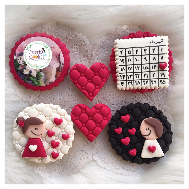 باکس کوکی سالگرد ازدواج 3 شامل 4 عدد کوکی سالگرد و 2 عدد کوکی قلب و جعبه و ربان