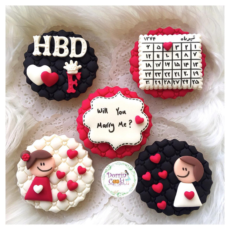 پک کوکی تولد تم مشکی و قرمز 5 شامل 5 عدد کوکی همراه جعبه و ربان