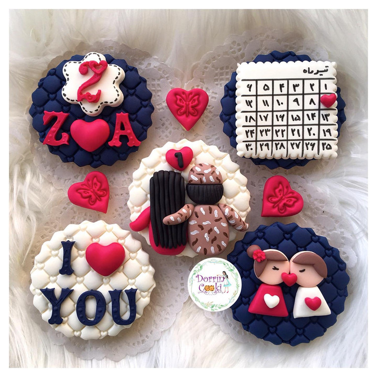 پک کوکی سالگرد ازدواج و پایان سربازی شامل 5 عدد کوکی و 3 عدد کوکی قلب ریز و جعبه و ربان