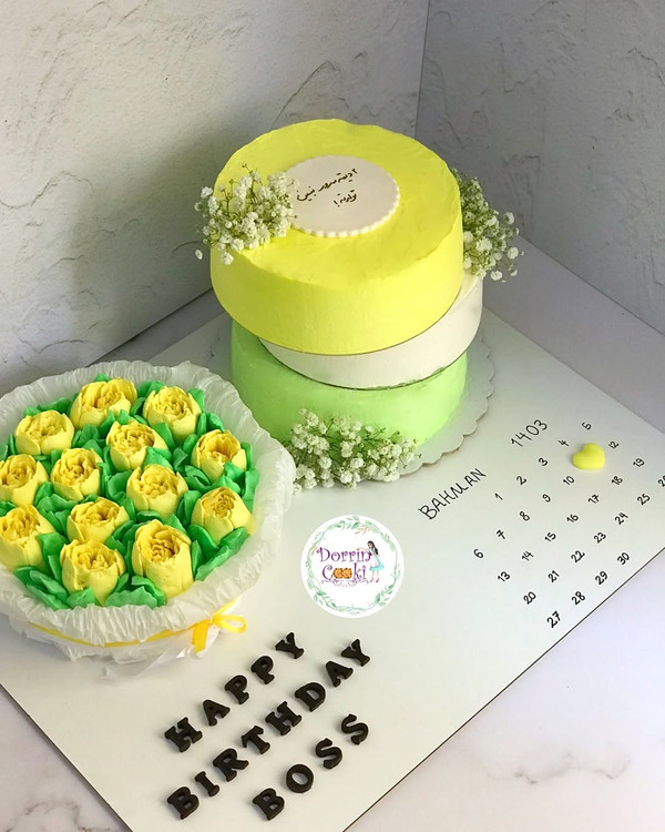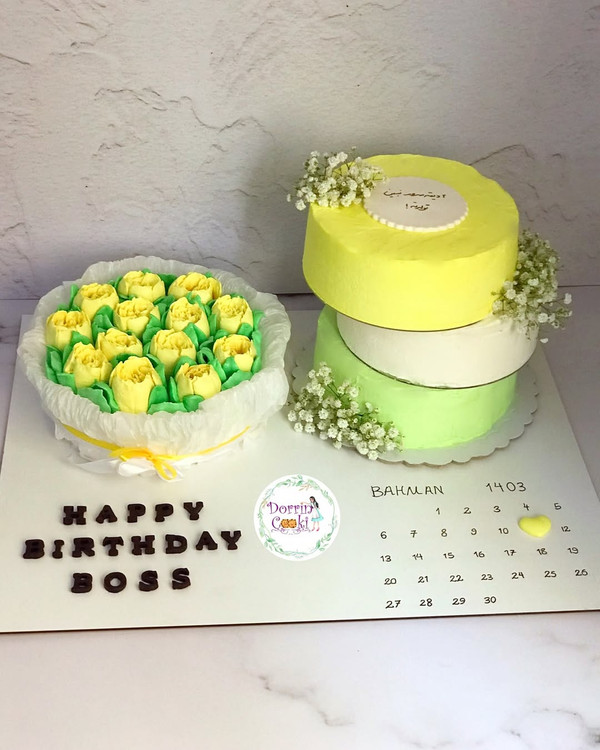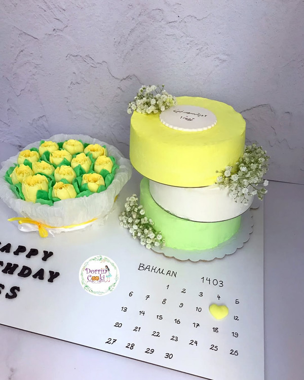 سینی کیک تولد و گل خوراکی مارشمالو وقتی با یک تیر دو نشون میزنیم و کیک و گل رو همزمان هدیه میدیم