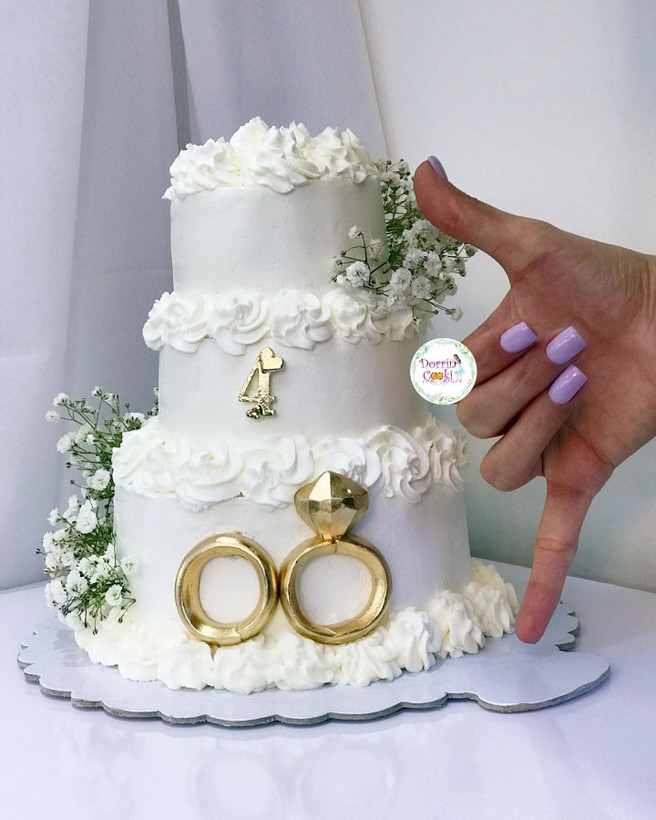 مینی کیک سه طبقه سفید سالگرد همراه با حلقه وزن حدودی 1300 الی 1500 گرم