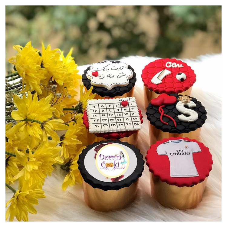 کاپ کیک تولد تم فوتبالیست شامل 6 عدد کاپ کیک شکلاتی و جعبه