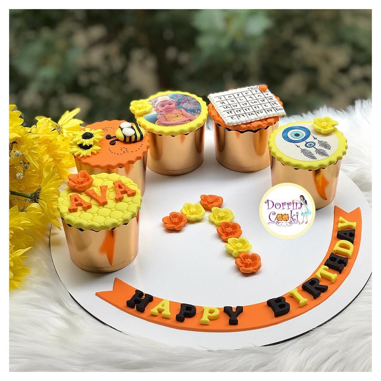 سینی کاپ کیک تولد نوزاد تم زنبور شامل 5 عدد کاپ کیک شکلاتی و سینی
