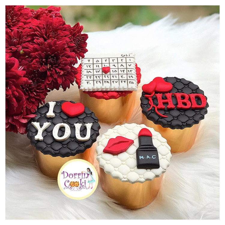 کاپ کیک تولد تم لوازم آرایش شامل 4 عدد کاپ کیک شکلاتی و جعبه
