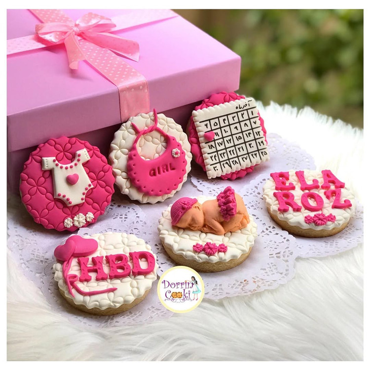 کوکی تولد نوزاد دختر شامل 6 عدد کوکی همراه جعبه ساده