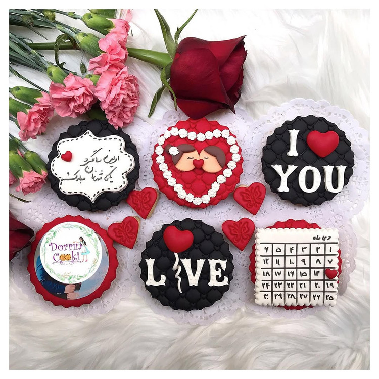 ست کوکی سالگرد ازدواج شامل 6 عدد کوکی و جعبه