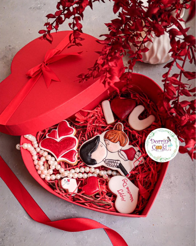 باکس کوکی ولنتاین شامل 6 عدد کوکی و باکس قلب و پوشال