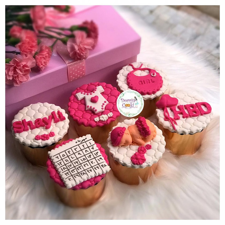 ست کاپ کیک تولد نوزاد دختر شامل 6 عدد کاپ کیک