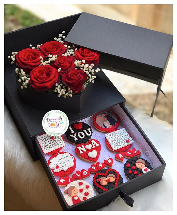 باکس سورپرایز گل و کوکی عاشقانه سالگرد دوستی