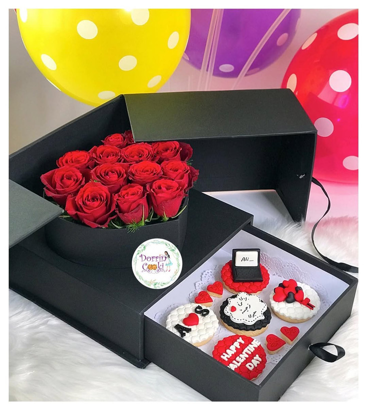باکس سورپرایز گل و کوکی ولنتاینی مهندسی