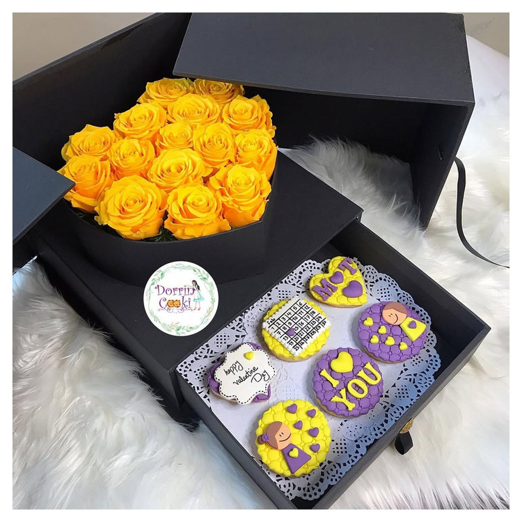 باکس سورپرایز گل رز زرد و کوکی ولنتاین