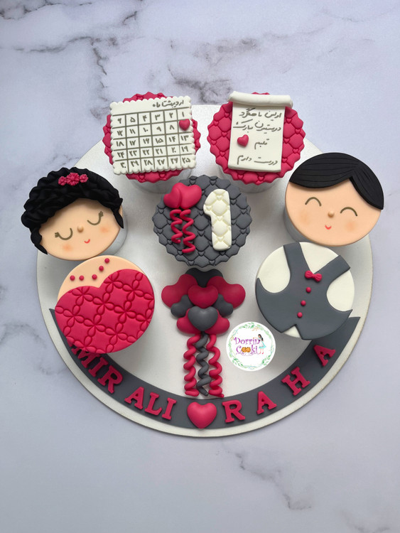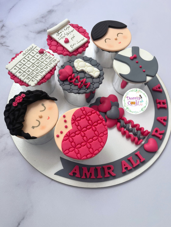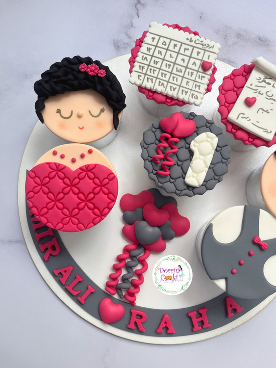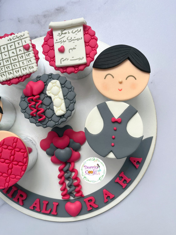 سینی کاپ کیک ماهگرد دوستی تم طوسی صورتی
