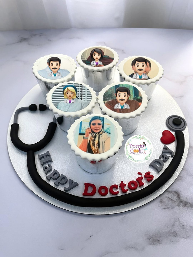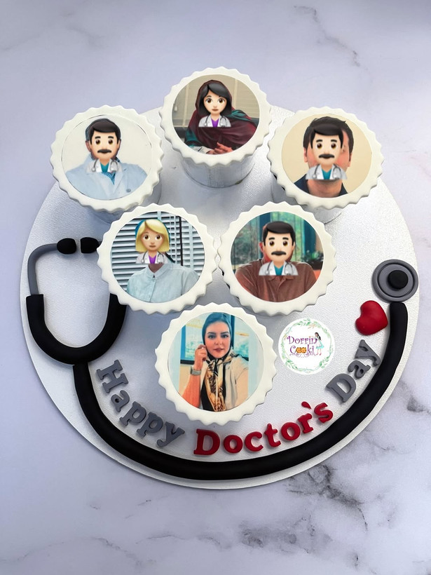 سینی کاپ کیک روز پزشک با تصاویر دکترای عزیز کلینیک آتیه غرب
