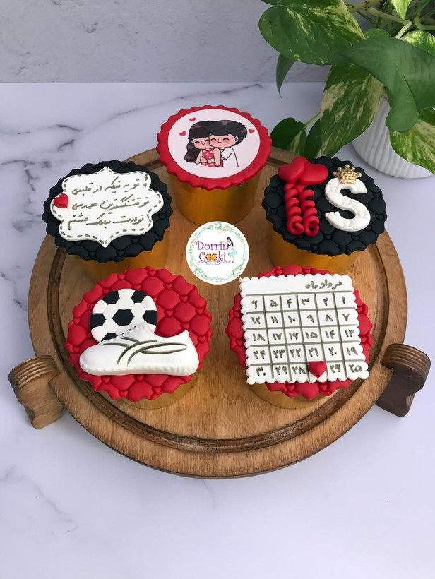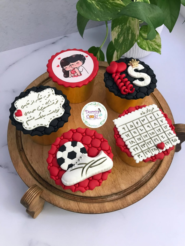 شامل ۵ عدد کاپ کیک شکلاتی تم فوتبالی مشکی و قرمز