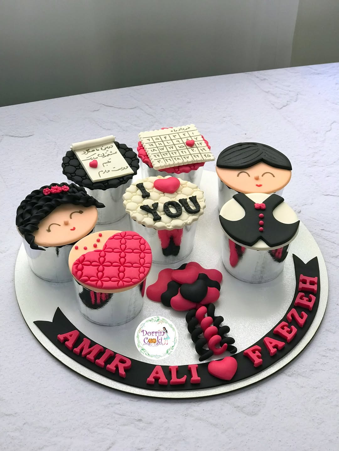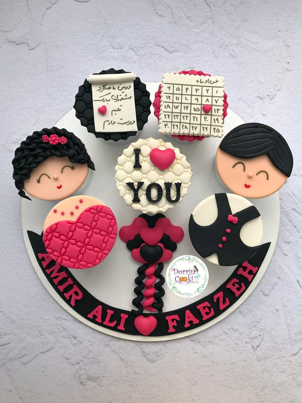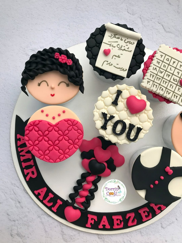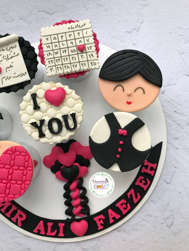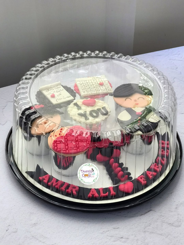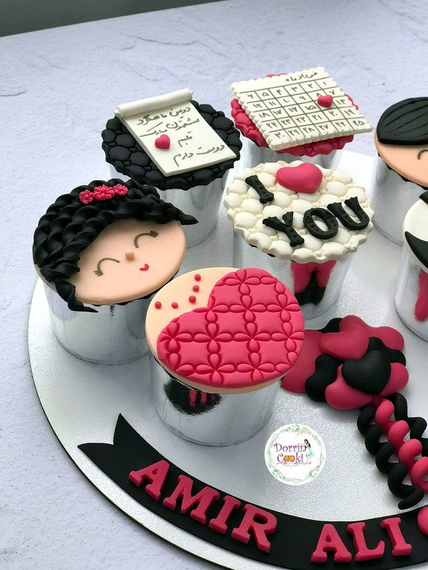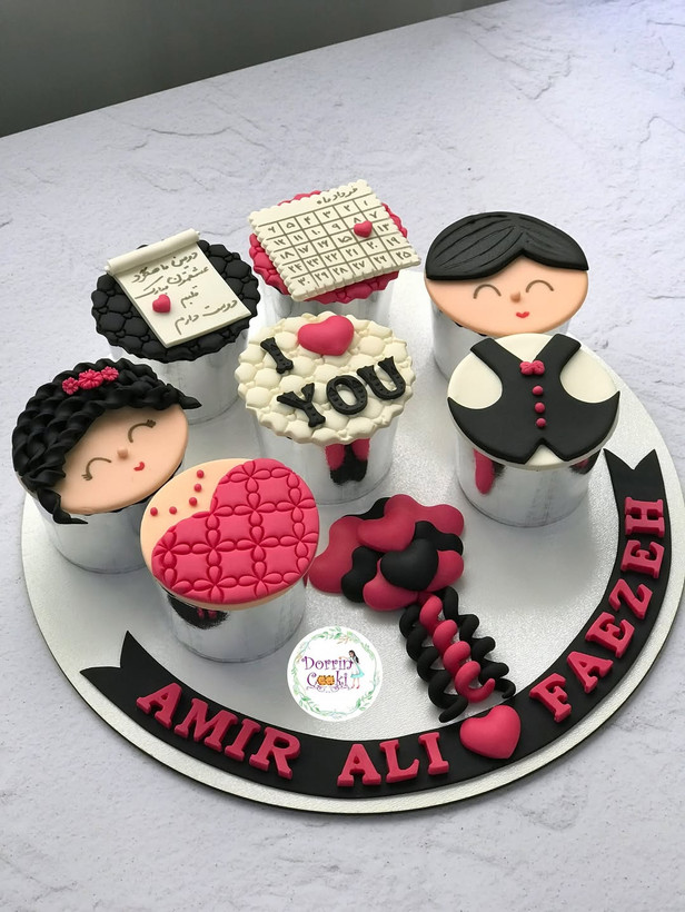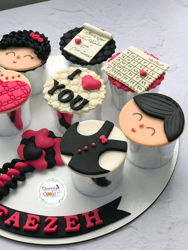 سینی کاپ کیک ماهگرد دوستی تم صورتی و مشکی شامل ۷ عدد کاپکیک شکلاتی
