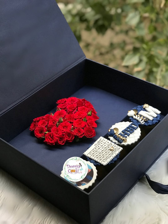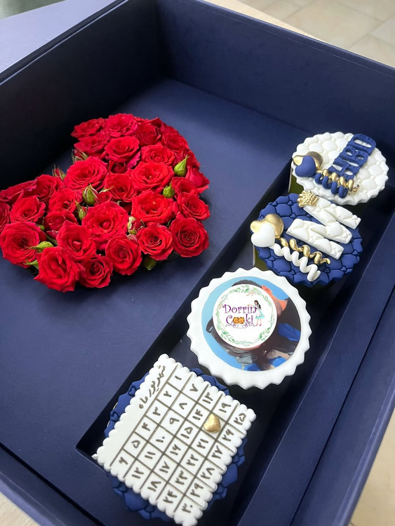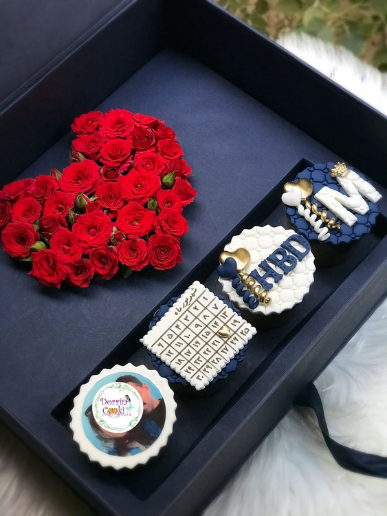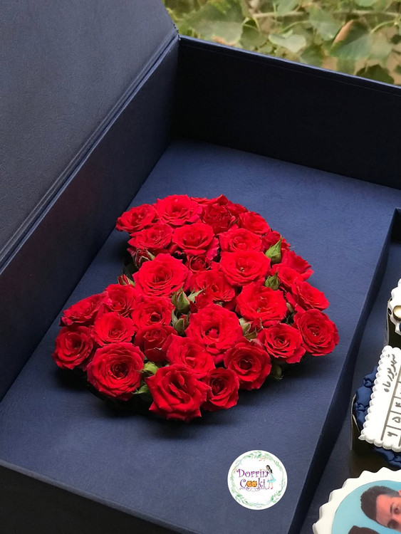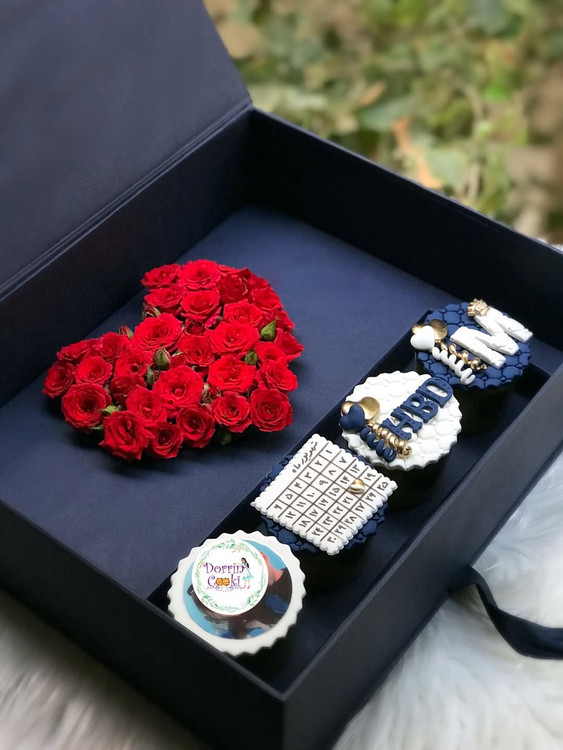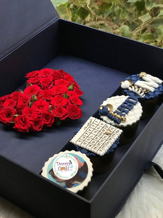 یک انتخاب جذاب برای هر مناسبتی شامل باکس سورپرایز لپتاپی و رز مینیاتوری قرمز و ۴ عدد کاپ کیک شکلاتی تم تولد