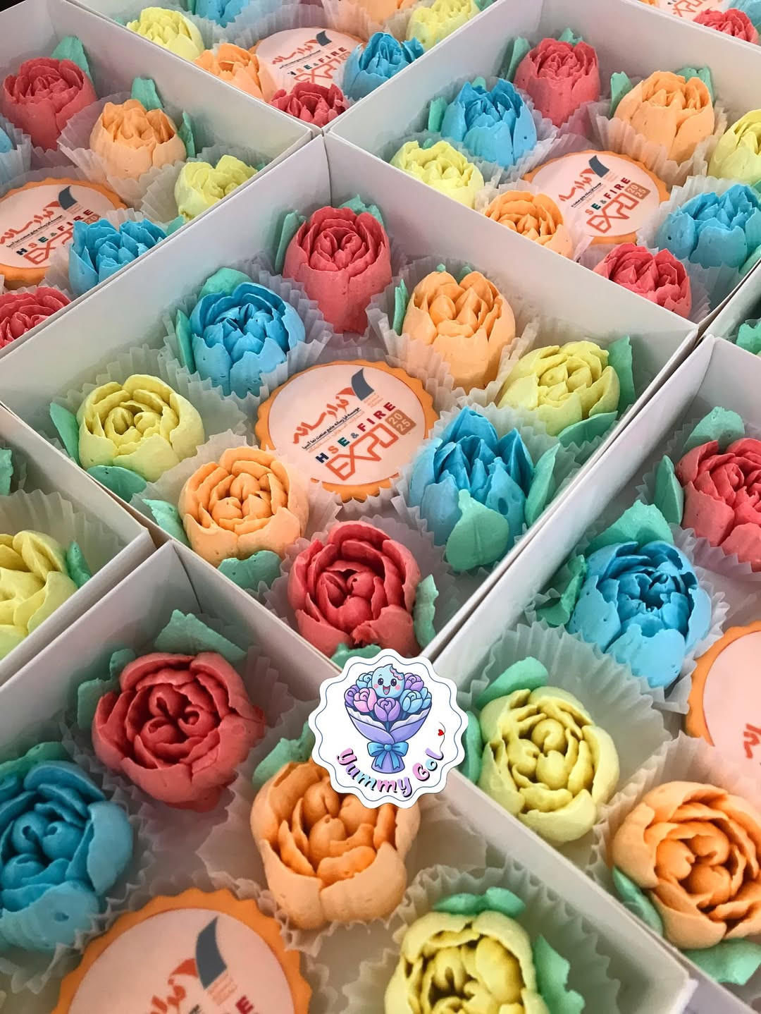 باکس کوکی لوگوی شرکت فرارسانه همراه گل های خوراکی مارشمالو که به غرفه داران نمایشگاه HSE تقدیم شد.