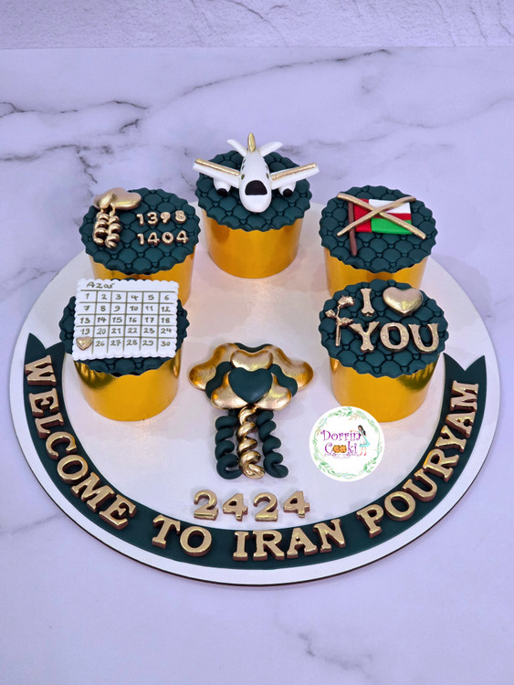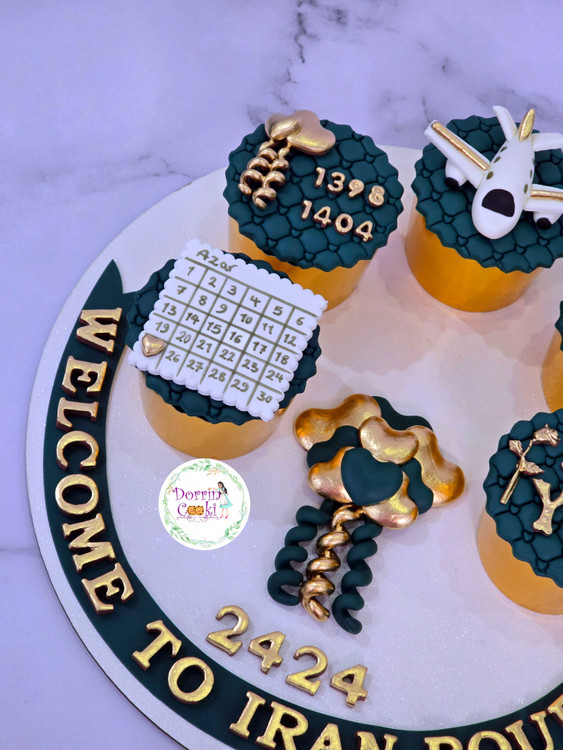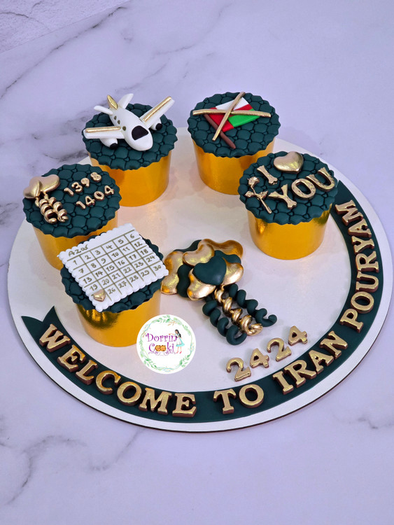 سینی کاپ کیک شکلاتی همراه با تاپر سبز کله غازی و طلایی