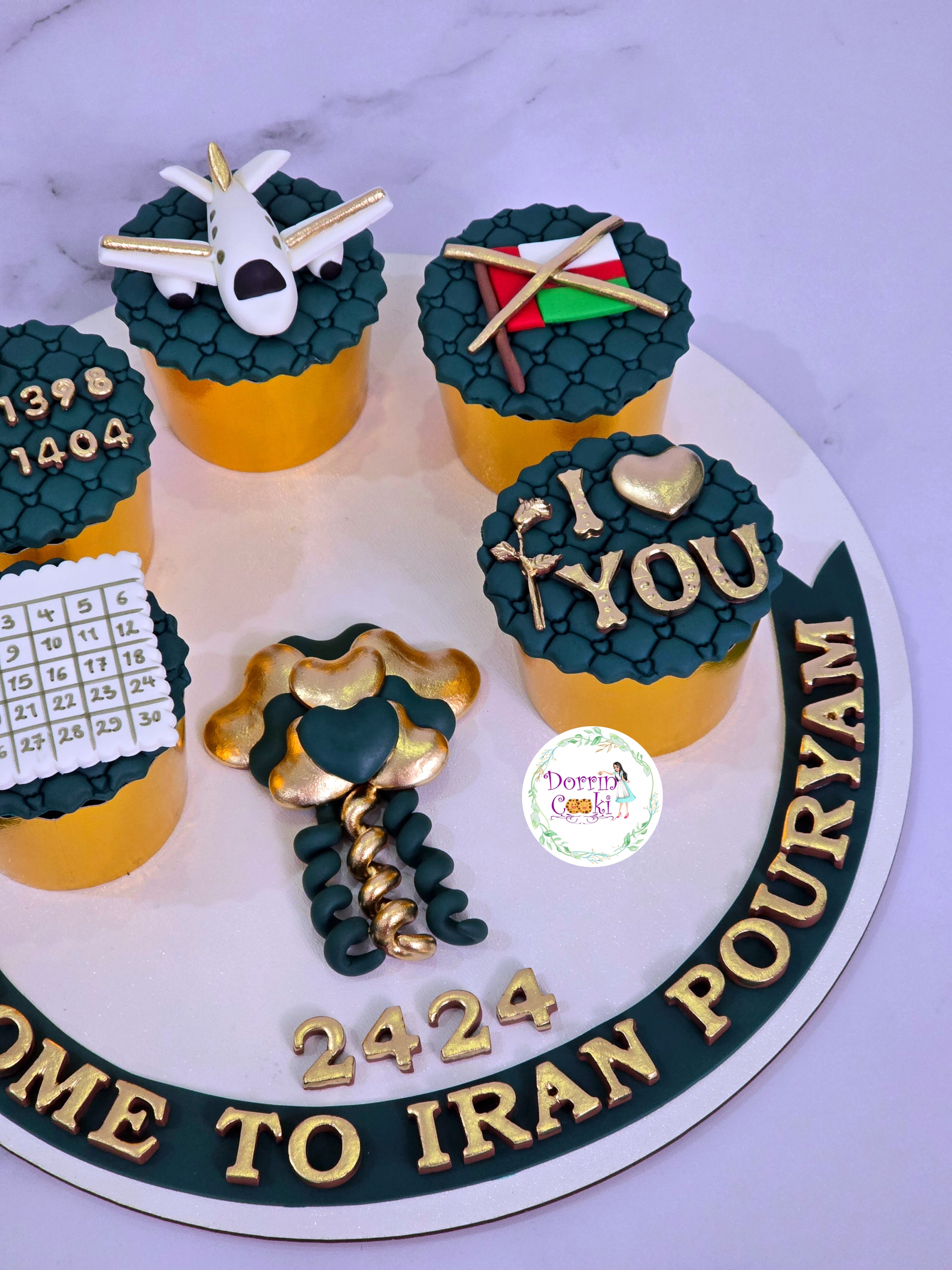 سینی کاپ کیک شکلاتی همراه با تاپر سبز کله غازی و طلایی