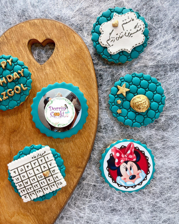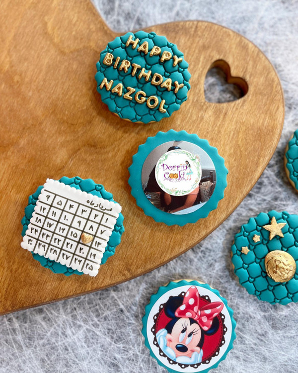 پک کوکی تولد تم سبز سلطنتی شامل 6 عدد کوکی همراه جعبه و ربان