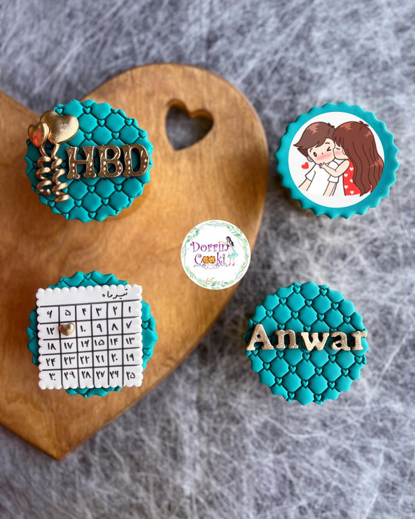 پک کاپ کیک تولد سبز سلطنتی شامل 4 عدد کاپ کیک تم تولد همراه باکس و ربان