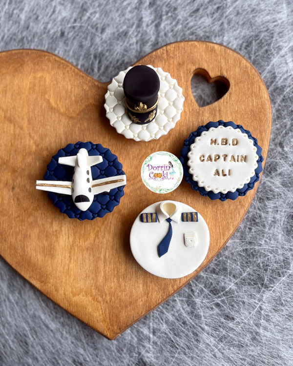 پک کوکی روز خلبان تم سرمه ای طلایی شامل 4 عدد کوکی روز خلبان همراه جعبه و ربان