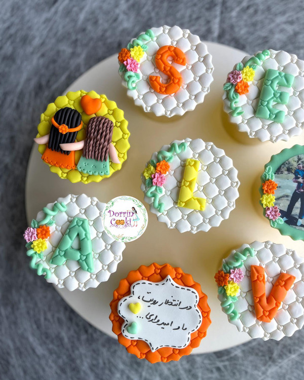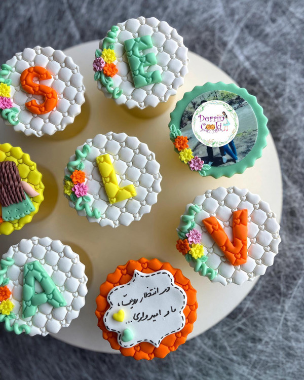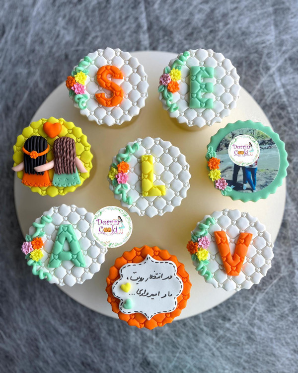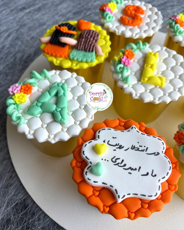 سینی کاپ کیک تبریک تولد نوزاد شامل 8 عدد کاپ کیک شکلاتی به همراه سینی